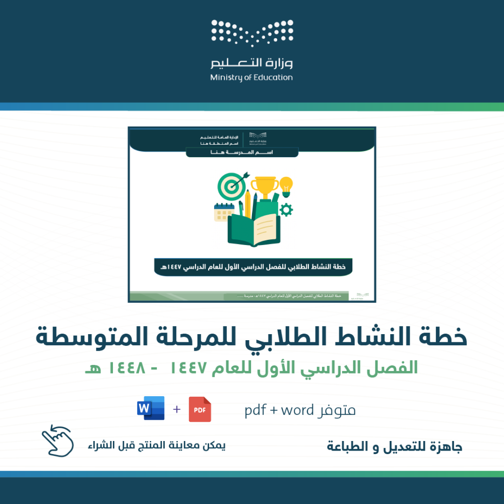 خطة النشاط الطلابي ( متوسط ) للفصل الدراسي الأول للعام الدراسي 1447 هـ