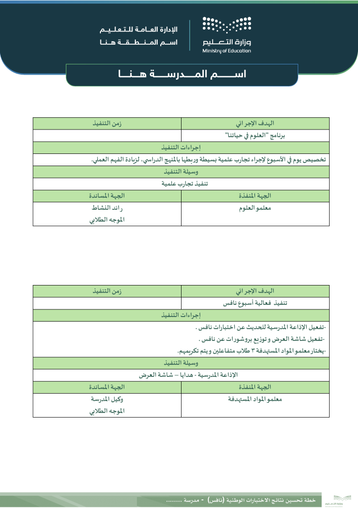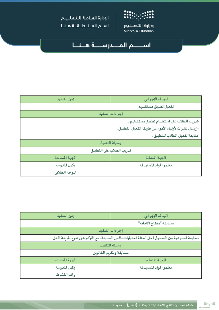 خطة تحسين نواتج التعلم في اختبارات نافس للعام الدراسي ١٤٤٧ هـ :