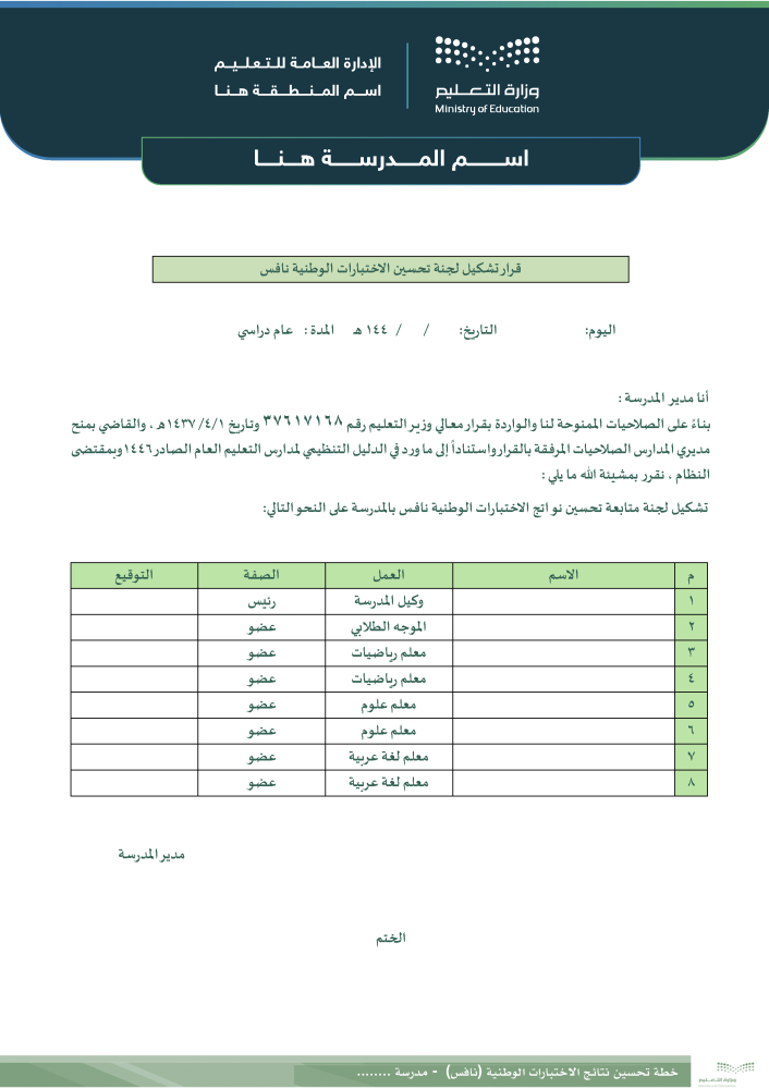 - قرار تشكيل لجنة تحسين نواتج التعلم.
