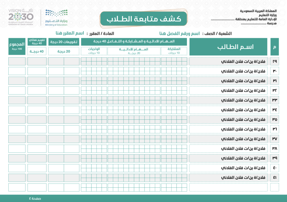 رابط تصميم سجل ( كشف ) متابعة الطلاب أو الطالبات